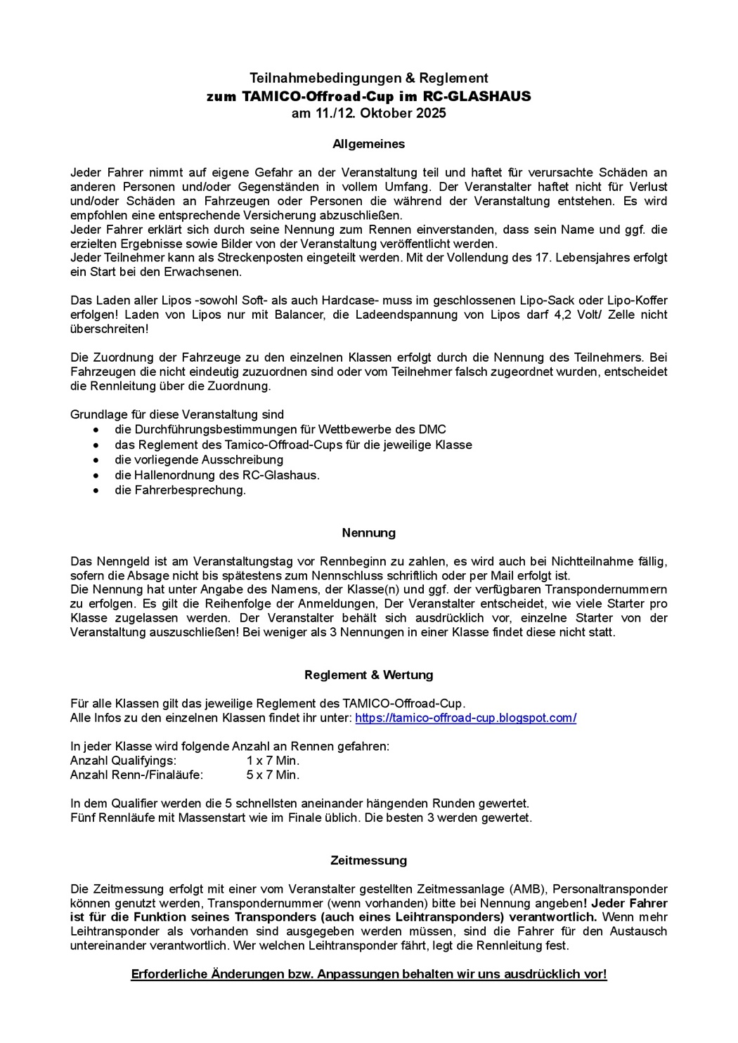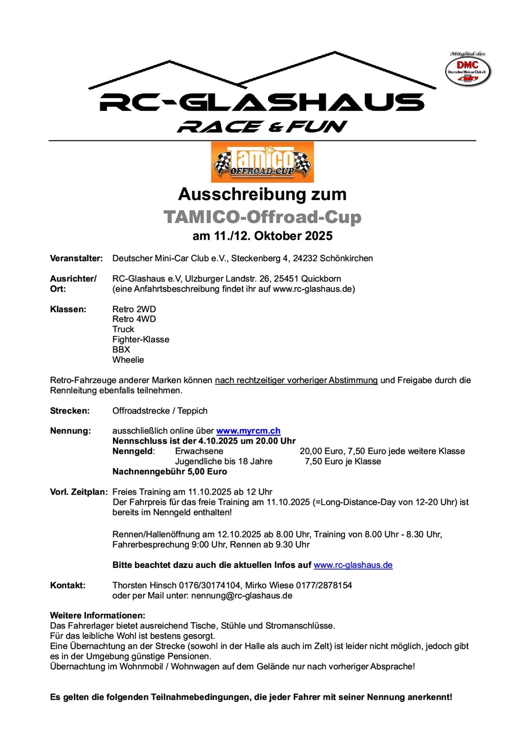 Tamico-Cup Saisonfinale 2025 im RC-Glashaus am 11. & 12. Oktober 2025